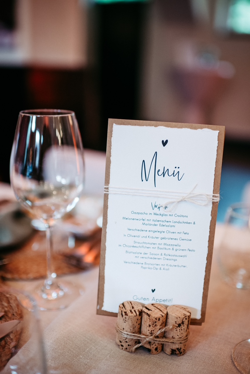 Kartenhalter aus Weinkorken – charmante Tischdeko für Hochzeiten mieten